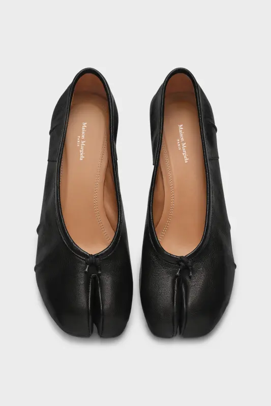 Maison Margiela Black Leather Heeled Tabi Ballerina Flats| Maison Margiela Black