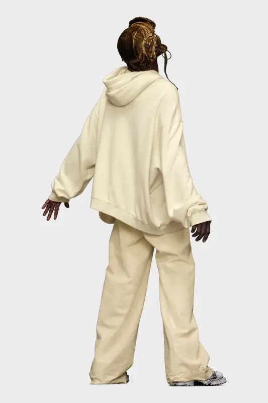 Made in cotton, the hooded sweatshirt has a zip-through design, which divides the front pocket. The numeric logo appears stamped to the side of the chest, deliberately faded in parts for a lived-in look. It is relaxed, with an oversized fit and loose, curved hem at the back. Distressed details are seen throughout with a contrast drawstring at the hood. Maison Margiela's signature, the four stitches, appear at the back; the opposite of a label.