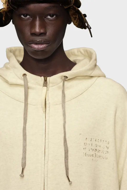 Maison Margiela Stamp logo zip hoodie Ecru