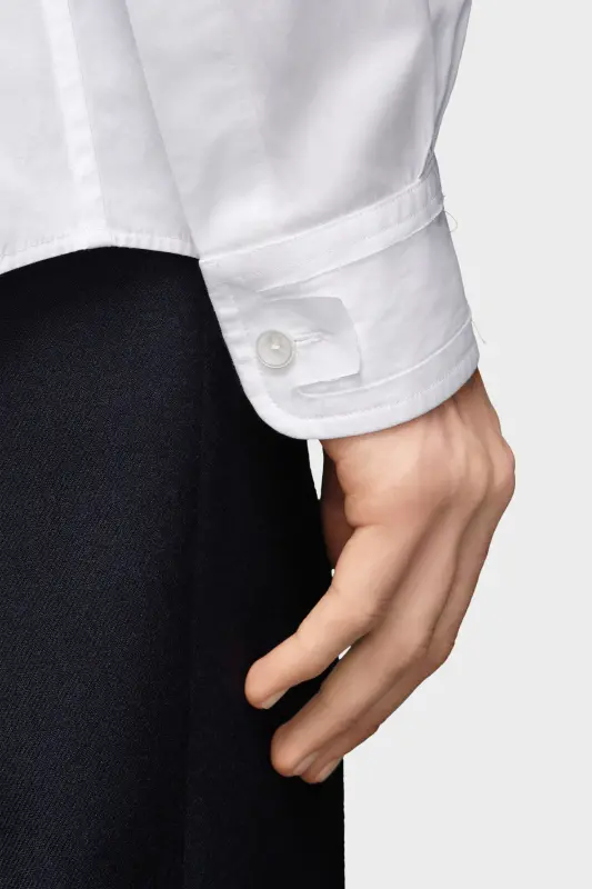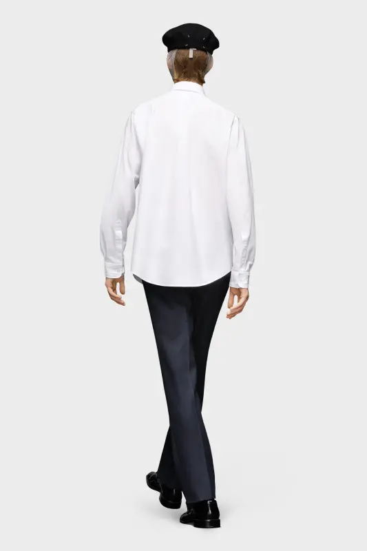 The classic long-sleeved shirt in eco cotton poplin with a collar, buttoned placket and chest pocket. Maison Margiela's signature, the four stitches, appear at the back; the opposite of a label.